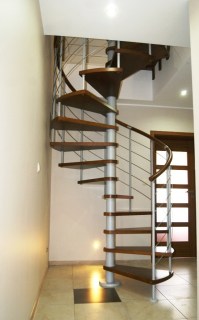 Zestaw schodów metalowych, drewnianych spiralnych, przygotowanych z litego drewna o barwie do wyboru z palety barw producenta, a także stali w kolorze satyna stalowym. Schody stworzone zostały z myślą o samodzielnym montażu dokonywanym przez Klienta, aczkolwiek istnieje możliwość zamówienia usługi montażowej. Zestaw nadaje się do zamontowania w otworze stropu o średnicy/boku 130 cm.