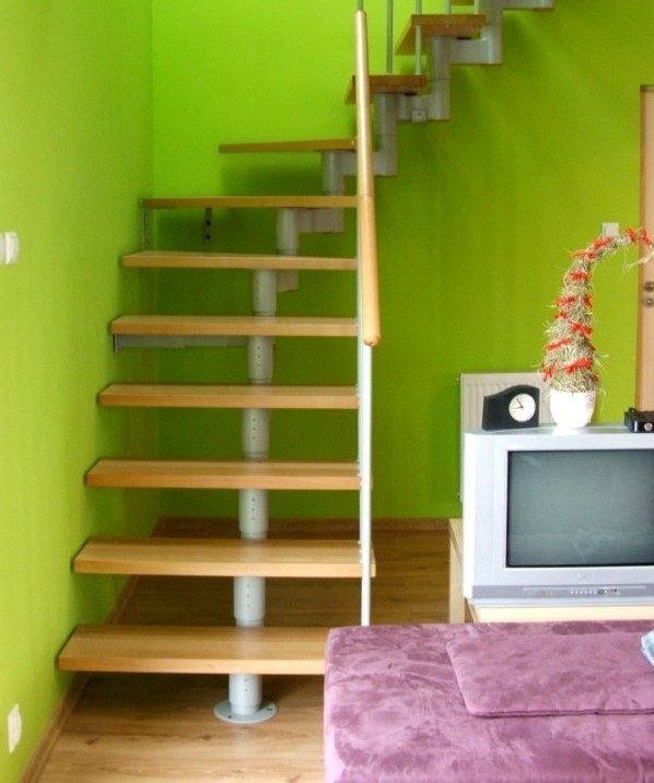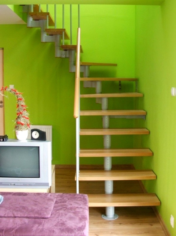 Den rekommenderade installationen av trappor från moduler är baserad på användningen av metallankar i väggen som inte går mer än 5 cm från strukturen. Om väggen är för svag, vila trapporna på stödkolonnen. Den frittstående konstruktionen kräver montering av en dubbelsidig räcken.