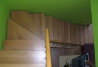 En uppsättning med 13 element anpassade för självmontering av kunden. Trappan är gjord av stål med matt matt finish och massivt trä. Träets färg kan väljas utifrån en färgpalett. Hela kan tillverkas professionellt av tillverkaren.