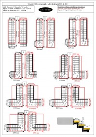 Trappan har en L-90-torsionsprocedur, som går åt vänster eller höger, men vid beställning kan du lämna en anteckning om behovet av att få en rak körning. Trappan består av 14 element som bildar 15 nivåer av den färdiga strukturen. Detta gör att satsen monteras i en av de 28 möjliga layouterna som tillverkaren presenterar.