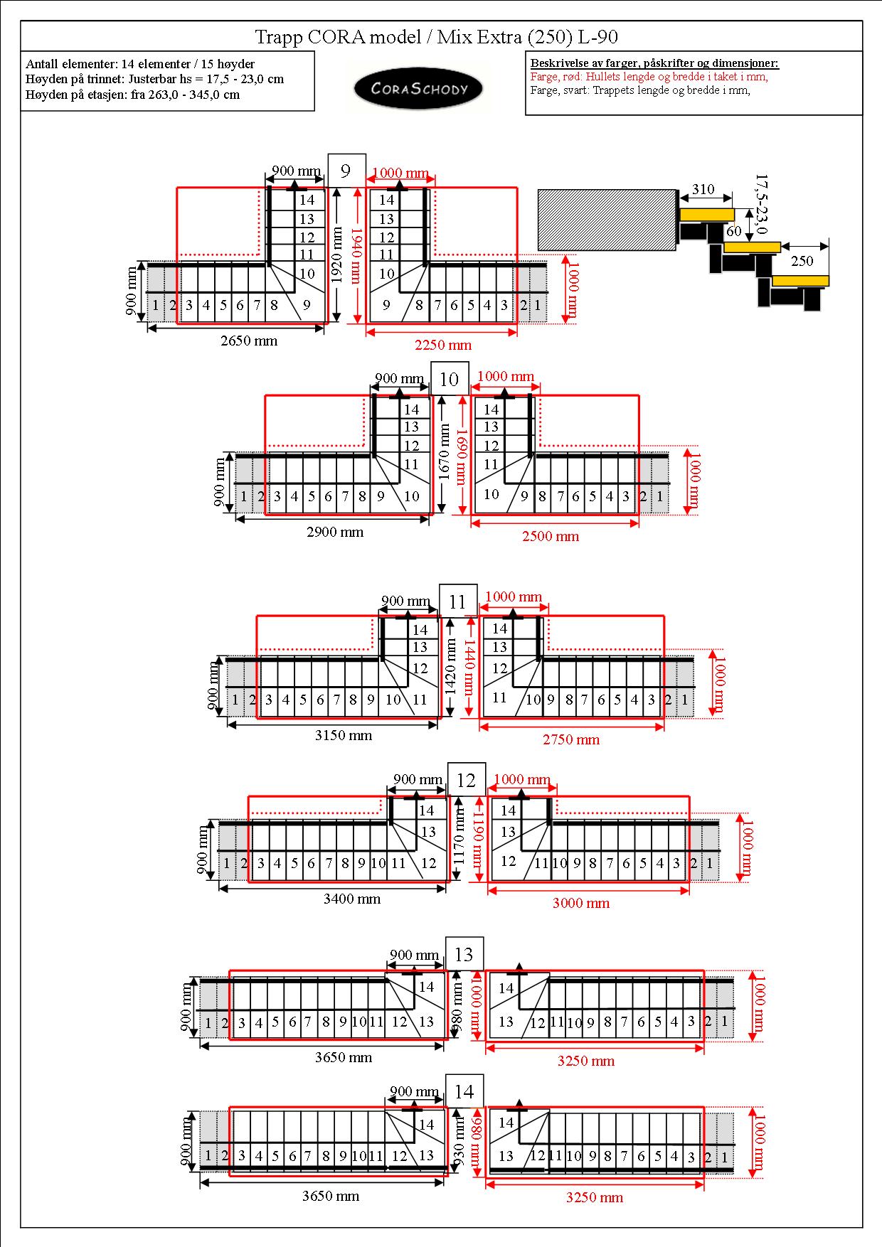 Om du inte kan justera trappan enligt nedanstående scheman gör vi ovanliga trappor för att mäta. Vi kommer att göra projektet, priset på trappan baserat på: - Utsikt över byggnadens tvärsnitt med faktiska dimensioner, - eller skicka en skiss med riktiga dimensioner och skicka den till e-post: coratrapp@gmail.com Vi kommer att förbereda ett specialerbjudanden. På begäran. KONTAKT - teknisk rådgivning: På timmarna: 9.00 - 20.00 timmar Telefon: +47 939 89 186 e-post: