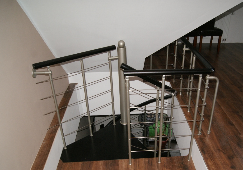 Tillämpning för spiraltrappa modell Bavaria 03 S som en extra räcke, på andra våningen som säkrar den cirkulära öppningen i taket.