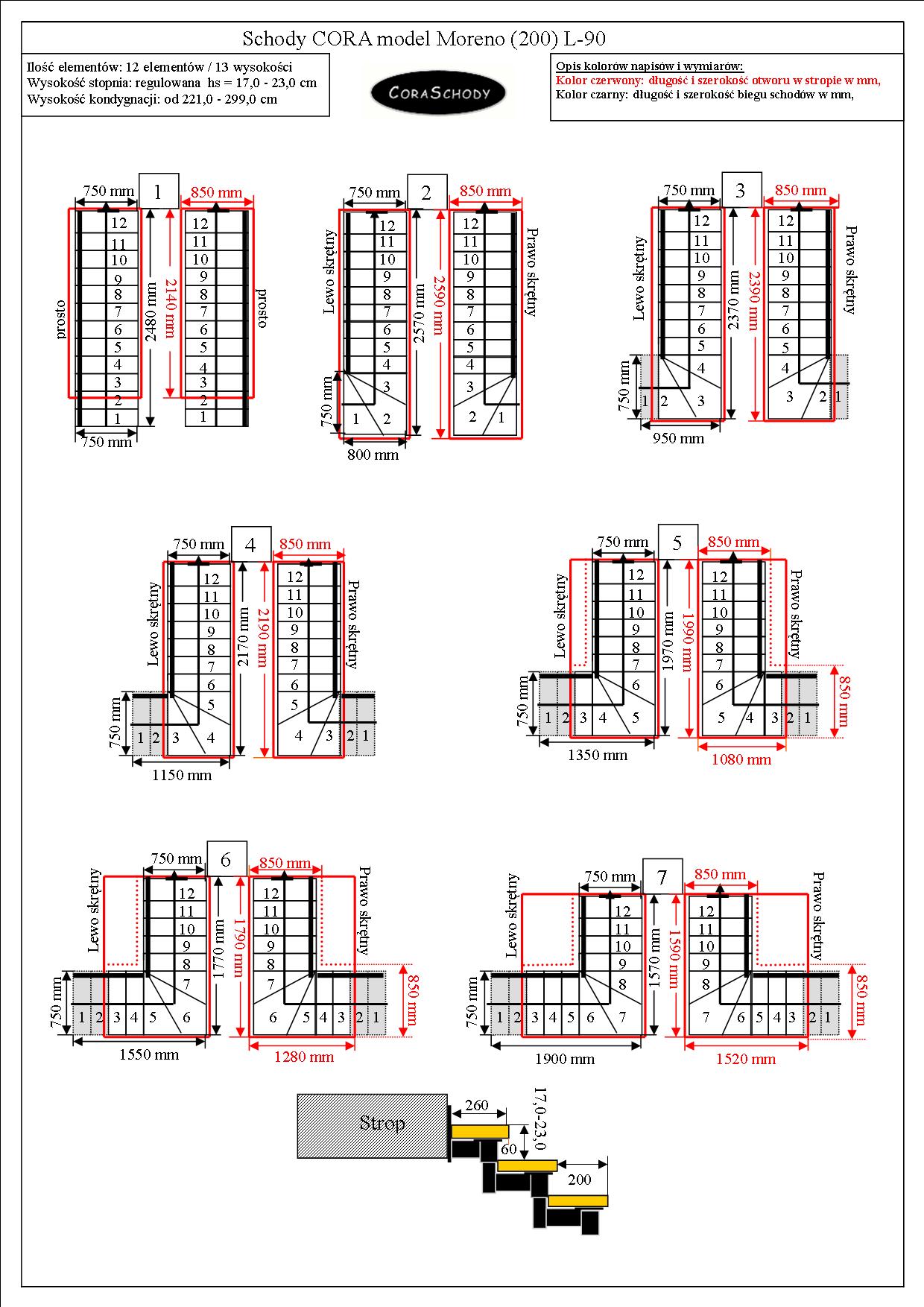 Det är möjligt att beställa modulära trappor i Moreno 200-modellen, både rak (P) och vridning (L-90). En enkel procedur kräver tillägg av en tidigare anteckning under inköpet. Torsionsproceduren finns både i vänster och höger riktning.